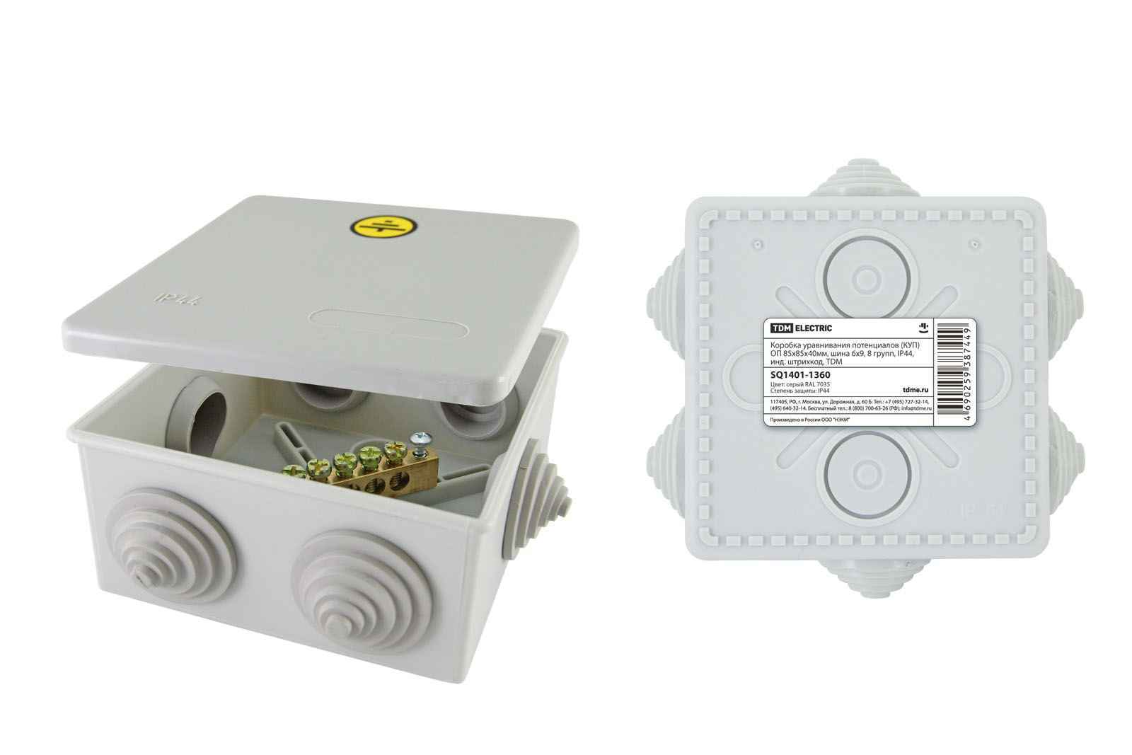Коробка уравнивания потенциалов (КУП) о/п 80х80х45мм шина 6х9 IP55 (РФ)