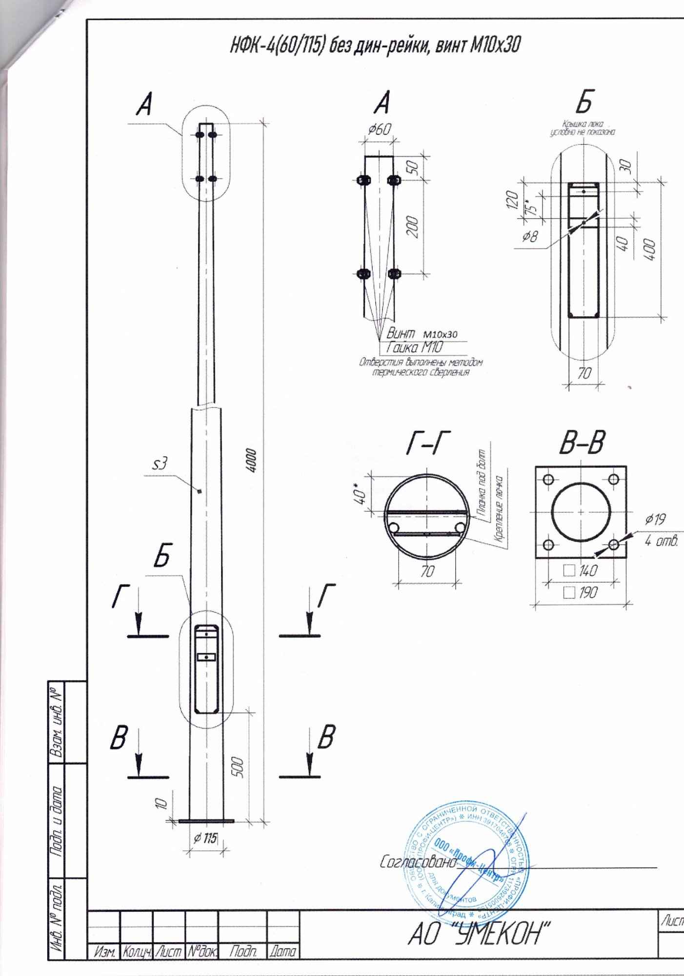 Опора НФК-4,0-02-ц мц.140 без DIN со шлифованным швом (без к.м. для кронштейнов) (РФ)