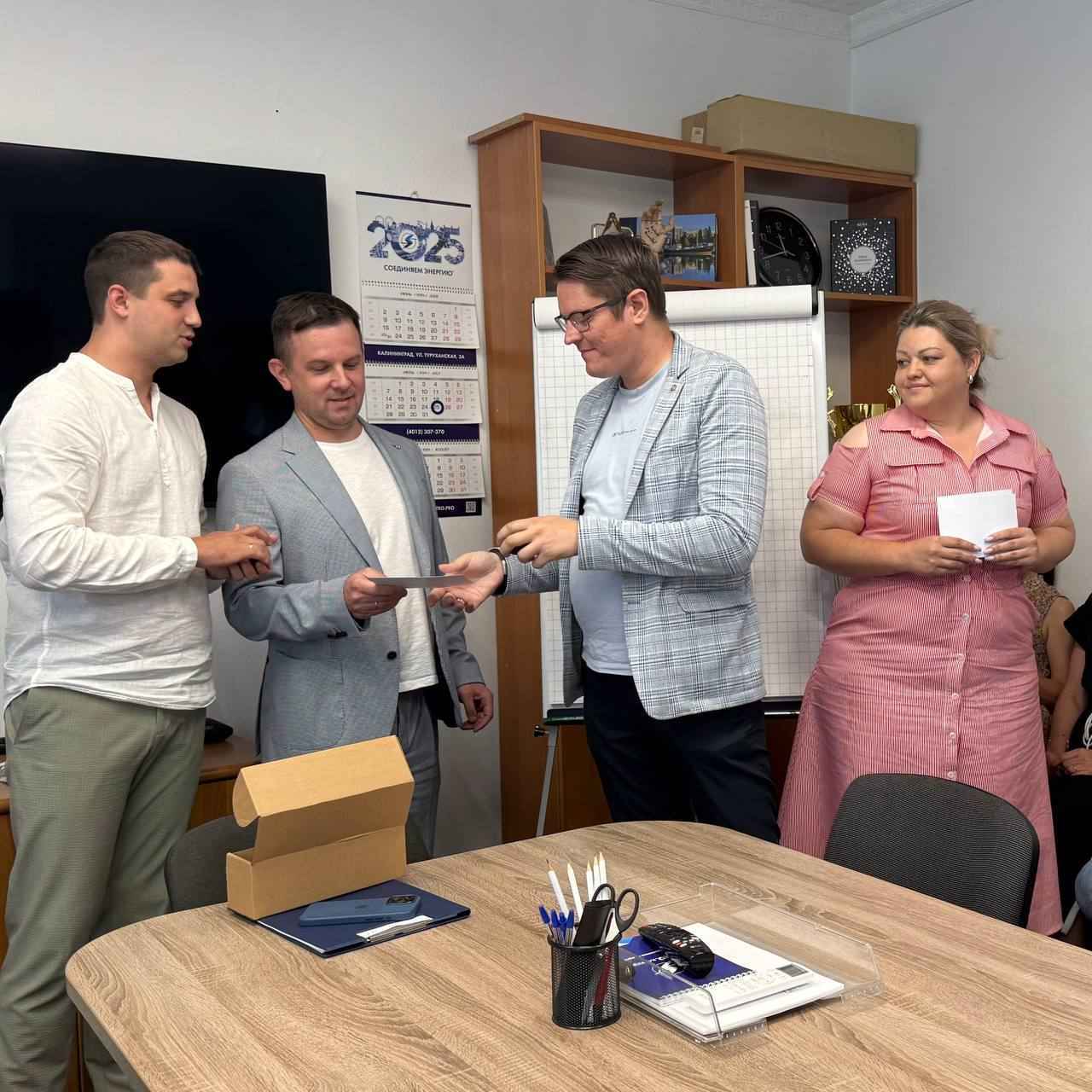 В честь Дня работника торговли, отмечавшегося 26 июля, компания «ПРО_электро» провела торжественную церемонию награждения сотрудников, посвятивших компании более 5 лет. В этот профессиональный праздник были отмечены те, кто не только посвятил себя развитию «ПРО_электро», но и внёс вклад в формирование сильной команды — главной ценности нашего бизнеса на протяжении уже 8 лет работы на калининградском рынке энергооборудования.